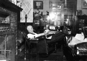 Theodore Wirth, about 1930, in living room of house built for him at Lyndale Farmstead. (Minnesota Historical Society negative 77420.)