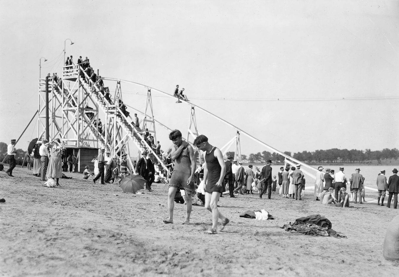 A slide at Nokomis Beach, built in 1924. (From City of Parks, courtesy Minnesota Historical Society.)