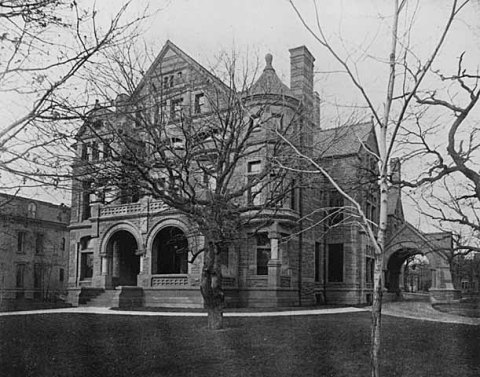 William McNair was an influential attorney and businessman in Minneapolis who had died in 1885. Among his many real estate holdings in the city was a 1,000-acre farm that stretched across much of near north Minneapolis to include Brownie Lake. At the time of his death he was said to be in negotiation with the park board to donate a 100-foot-wide strip of land for a parkway that would have extended from Lake of the Isles, around Cedar Lake, to Farview Park in north Minneapolis. It was said he already owned nearly all the land that would be required for that four-mile parkway. His obituary (September 16, 1885, Minneapolis Tribune) claimed that he was building a mansion at 13th and Linden (facing Hawthorne Park) that would rival W. D. Washburn’s “Fair Oaks” in south Minneapolis. Louise McNair, his widow, apparently finished it, judging by this photo. Whatever happened to it? Did it outlive Fair Oaks?