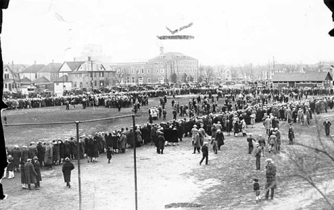 In the biggest game of the 1926 park league season perennial powerhouses Bottineau and Marshall Terrace played at Bottineau Field in front of a crowd estimated by the Minneapolis Journal at 5,000. The Botts defeated the Terraces on a 55-yard punt return by Charles Samek. (City of Parks, Minneapolis Journal, Minnesota Historical Society)