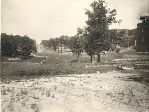 Thomas Lowry School in 1916 showing Buchanan Street vacated between the school and Audubon Park at left. (Minneapolis Public Schools)