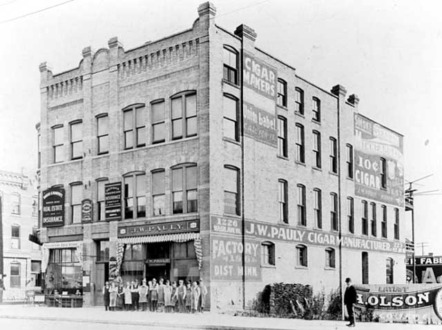 Of course whenever I’m curious about anything from our city’s or state’s past I go to the photo collection of the Minnesota Historical Society to see if there are pictures. Naturally, when I entered the search term “cigar” I found a number of interesting photos. Here are two.
