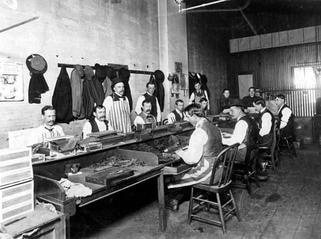 J. W. Pauly Cigar Company cigar makers, perhaps members of Local 77 Cigar Makers’ International Union of America, ca. 1895 (Minnesota Historical Society)