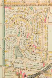 Oak Lake Addition was a rare real estate development in Minneapolis because the streets followed the contour of the land instead of a grid pattern. While I’ve found no evidence of who was responsible for the layout of the addition in 1873, it is reminiscent of Horace Cleveland’s work in St. Anthony Park for William Marshall at about the same time and later in Washburn Park or Tangletown near Minnehaha Creek. Although I find no reference to the project in Cleveland’s correspondence, it is plausible that he was involved in the layout of Oak Lake Addition.