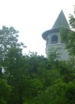 Last year nearly 80 diseased ash trees were removed from the park in which the green beetle had staked its first claim in Minneapolis. I anticipated seeing the Witch’s Hat on a bald head. Not so. Other species, especially the old oaks, make the absence of ashes barely noticeable. Several new trees had been planted, but the vegetation around the hill and tower is very dense. Given the weather of the last few months, the park, as well as the rest of the neighborhood, had the feel of a rain forest. The gentle mist at the time exaggerated the effect.