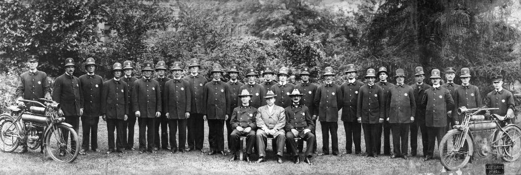 Minneapolis park police in the 1912 annual report of the Minneapolis Board of Park Commissioners. At least two “Flying Merkels” were used by the police. An independent park police force has often been cited as one reason for the great success of the Minneapolis park system. (Minneapolis Park and Recreation Board)