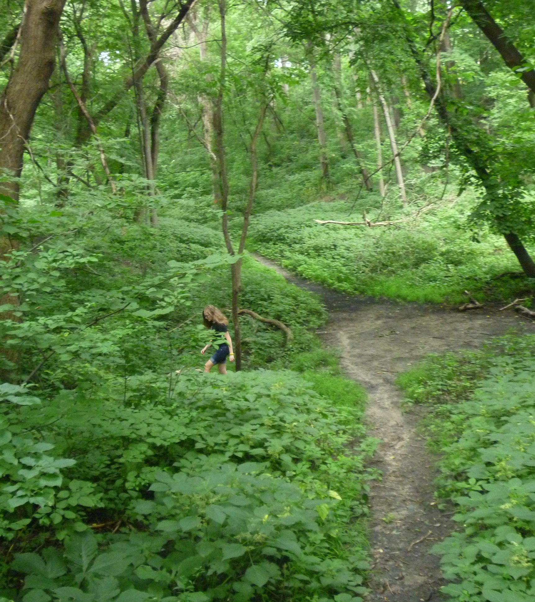 Oh, no! You let out one of our neighborhood secrets! We often swing on the ropes hanging from the trees and explore the stick forts; in the winter there are some (kind of scary) sled runs down the hills, and it’s a great place to practice hill climbing in snowshoes.