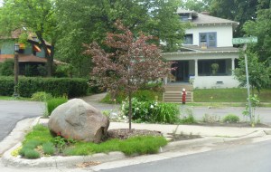 The beautiful triangles in Prospect Park are maintained by the Prospect Park Garden Club. I learned that in the delightful backyard of Mary Alice Kopf last Saturday during the Annual Garden Walk and Plant Sale sponsored by the Prospect Park Garden Club. Nobody I talked to in Prospect Park knew, however, why some triangles were taken over by the park board and others weren’t. So if you know…
