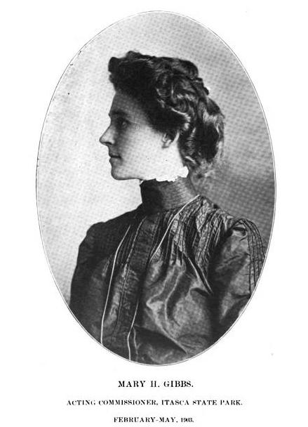 One of the great stories in Minnesota park history is how Mary Gibbs, in 1903, confronted the lumbermen and opened the dam they had built on the Mississippi River that was flooding the shores of Lake Itasca. Gibbs was the acting commissioner of Itasca State Park at age 24 after the previous commissioner, her father, died. She was quickly stopped from upholding state law by a local judge and promptly replaced by Governor Van Sant with someone more malleable to lumbering interests. Still, the young woman who had the integrity and courage to take on powerful interests is an inspiration. The visitors center in the park at the headwaters of the Mississippi is named for her.