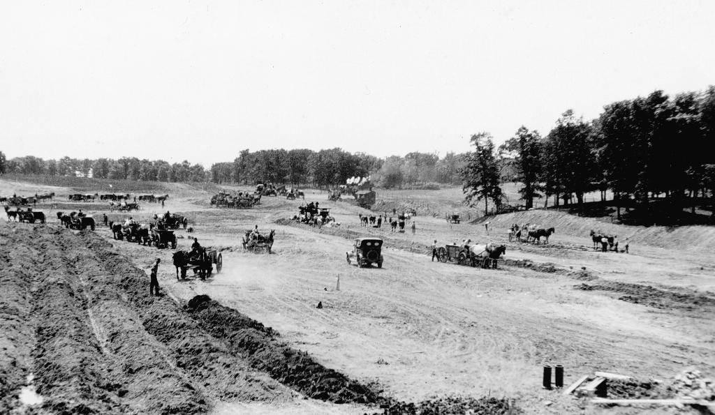 Work crews building what became Victory Memorial Drive in north Minneapolis in about 1920. (Minneapolis Park and Recreation Board)