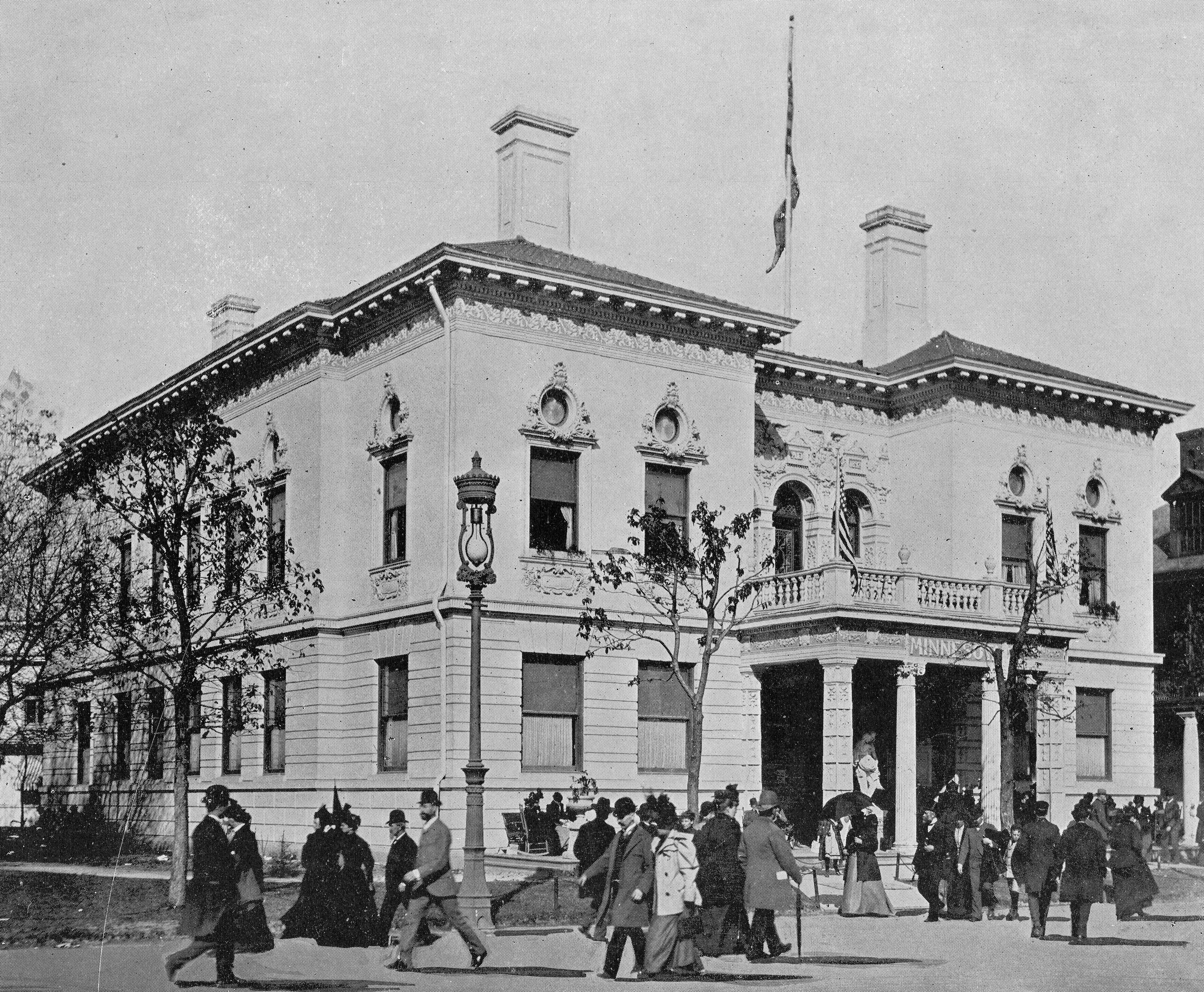 The Minnesota building at the World’s Columbian Exposition in 1893 featured Jakob Fjelde’s sculpture of Hiawatha and Minnehaha in the vestibule.