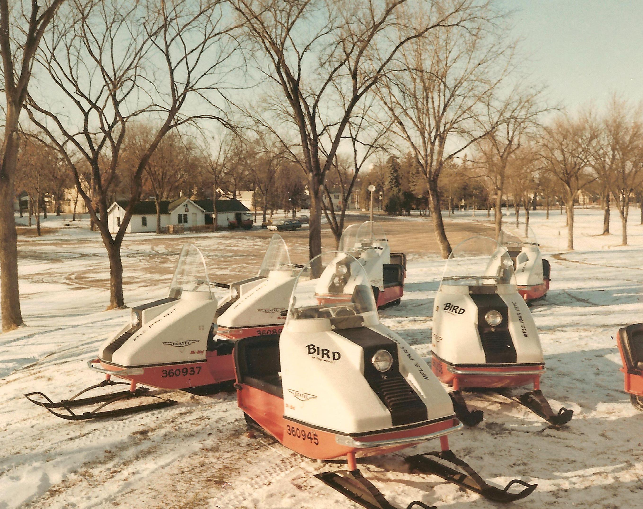 The park board’s 1968 annual report noted that “ski sleds” were rented at “various wintertime locations.” I was surprised to learn from the 1968 annual report that it was also the first year electric golf carts were used on any Minneapolis park golf course; they were also first rented at Meadowbrook. So snowmobiles beat golf carts onto park board golf courses by a few months. The contract for 13 snowmobiles and 6 snowmobile sleds for rental was won by the Elmer N. Olson Company.