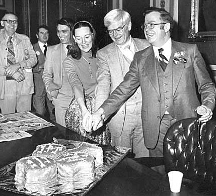 The driving force behind the park board’s defense of its land was better known as a Minnesota legislator and President of the Minnesota Senate from 1977-1981. Ed Gearty, far right, was President of the Minneapolis Park Board in 1962 when he was elected to the Minnesota House of Representatives. He had to resign his park board seat, but was then hired by the park board as its attorney. He helped devise a pugnacious strategy that helped keep park losses to freeways as small as they were. This photo with other state lawmakers was taken in 1978. Gearty deserves credit along with Ruhe, counsel Ray Haik and park board Presidents Dick Erdall and Walter Carpenter for trying to keep Minneapolis parks intact as a park “system.”