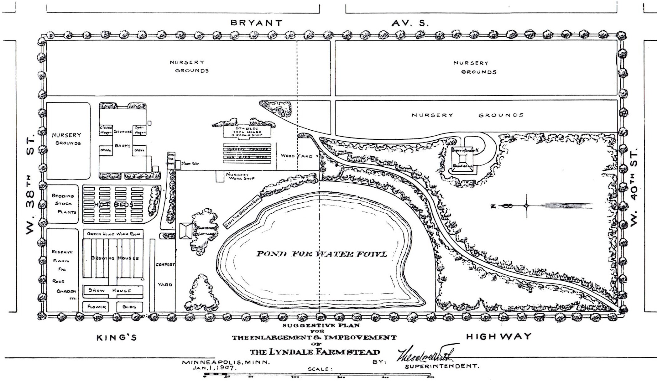 The letter was an exciting discovery because for many years I and others have looked for evidence that Loring and the park board had agreed in 1905 to build a house for Wirth. That house was eventually built in 1910, four years after Wirth came to Minneapolis, at Lyndale Farmstead on Bryant Avenue near Lake Harriet. Theodore Wirth lived in the house until 1945, ten years after he retired as park superintendent. It was occupied by succeeding superintendents from then until David Fisher moved out of the house to one of his own choosing in the mid-1990s. The house became the residence of the superintendent once again in 2010, however, when Jayne Miller chose to live there when she moved to Minneapolis.